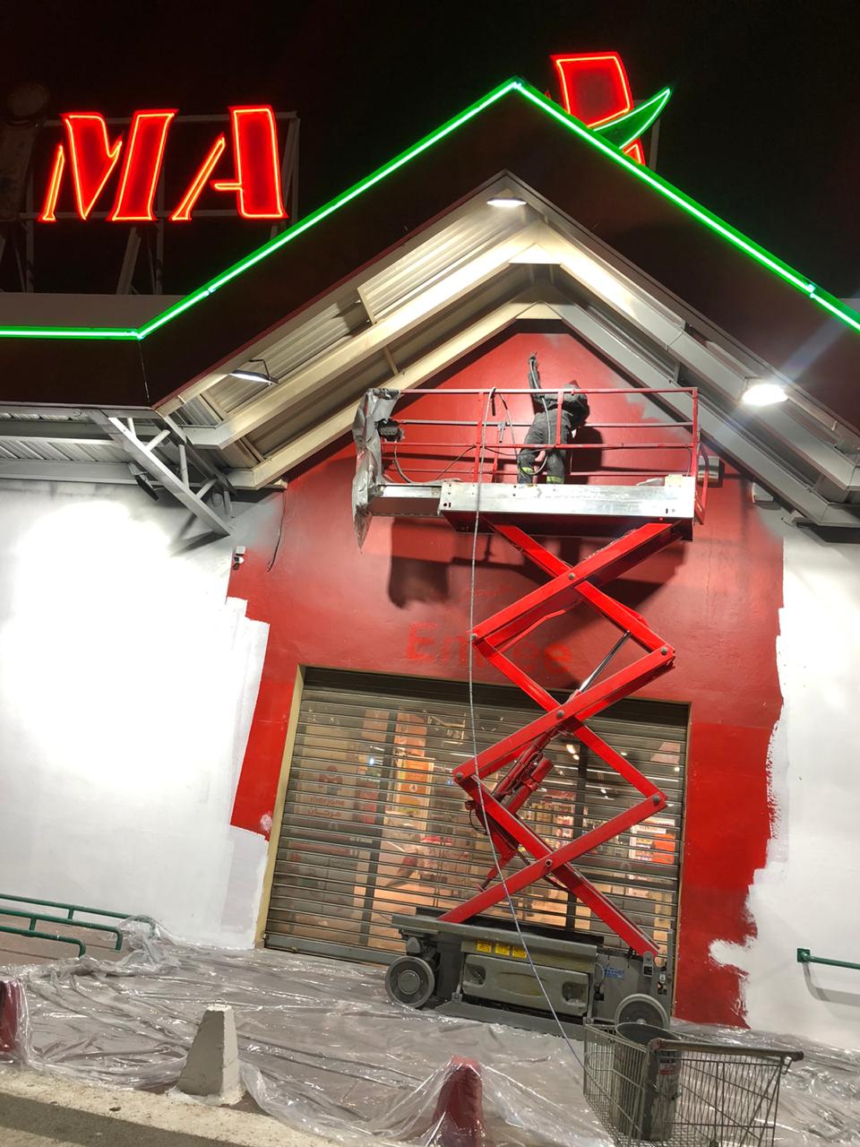 Afin de respecter les horaires d'ouverture et de fermeture des magasins, les travaux ont été réalisés par les équipes de nuit tout en prenant en considération les matériels et produits de vente exposés: un aménagement spécifique pour la protection et une organisation militaire pour permettre la réouverture chaque matin dans les meilleures conditions.